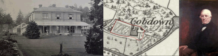 The first readily available depiction of the property is on the 1869 six-inch OS map. It is likely that the property was constructed for Robert Tassell, J.P., (1794 – 1874) who is described as being ‘of Cob Down’. Cobdown House was put up for auction in 1898 and was described as a ‘comfortable residence of moderate size’, ‘substantially erected by the late owner for his own occupation’.
